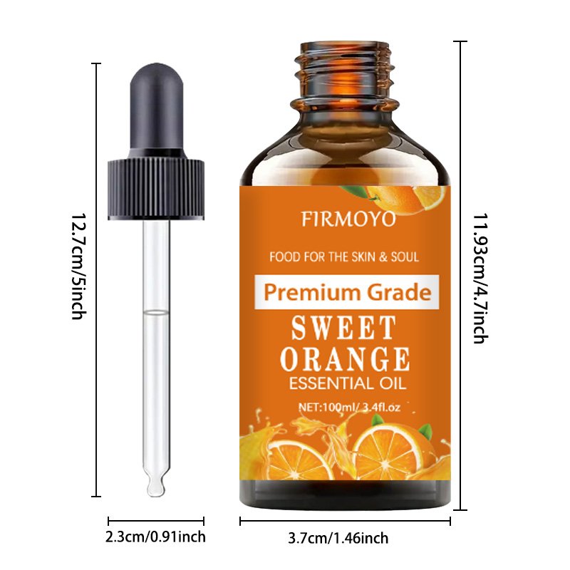 [100% Sweet Orange Oil] Premium 100% Sweet Orange Essential Oil 100ml/3.38fl.oz | Hypoallergenic Moisturizing Oil for Nail, Hair & Light Beige Care, Massage, Diffusers, Humidifiers, Meditation Relaxation